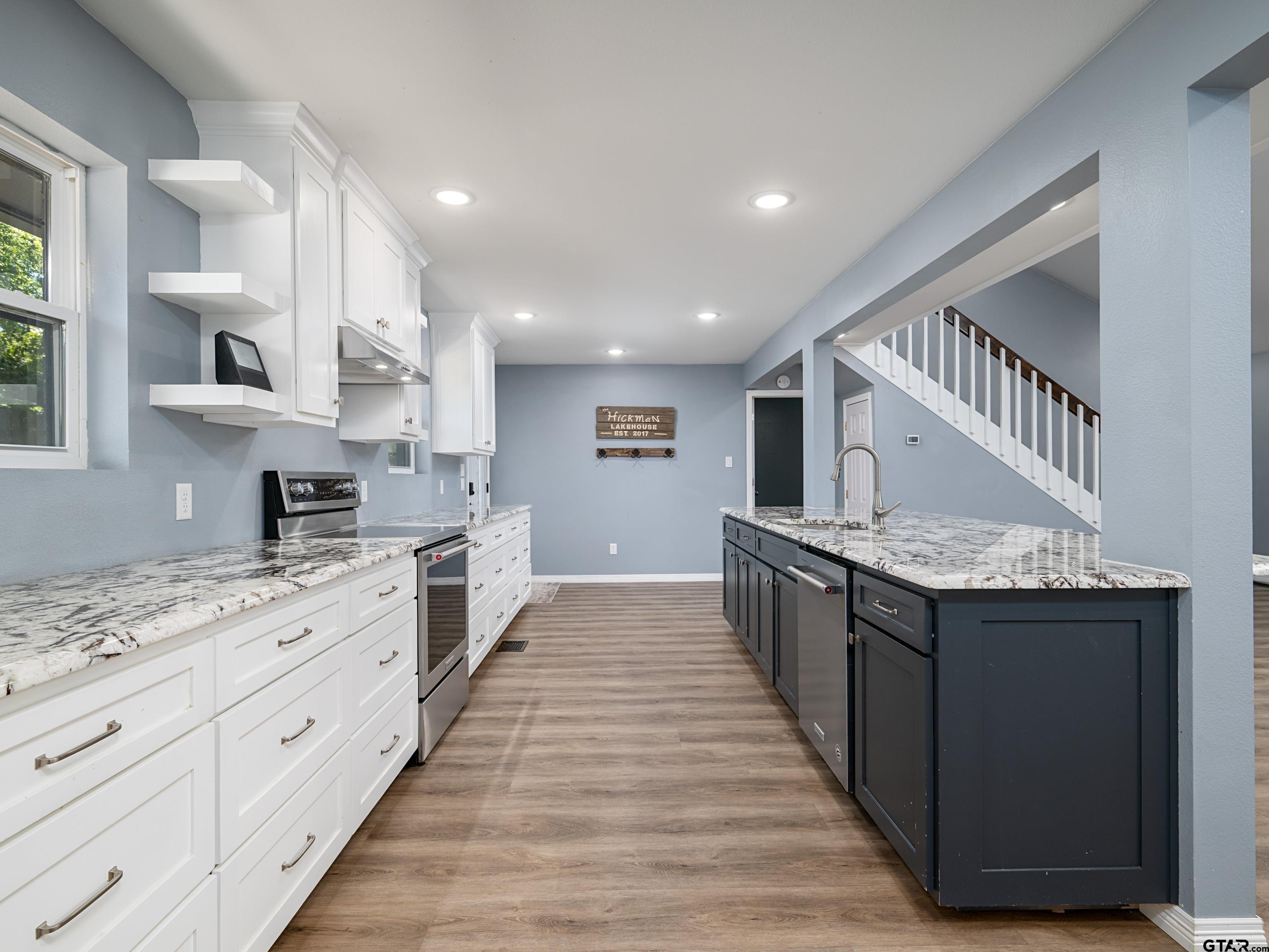 | Secluded Lakefront Living on Lake Palestine! This beautifully remodeled 4-bedroom, 4-bath home offers the perfect blend of comfort and convenience with open water access to Lake Palestine. Enjoy a fully equipped boathouse with one electric lift, bar area, and storage-all connected to the home by a concrete path, perfect for a golf cart or side-by-side. Inside, you'll find vaulted ceilings, a spacious family room, and an upgraded kitchen with granite countertops, island sink, stainless appliances, and a walk-in pantry. The downstairs primary suite features dual walk-in closets, a large walk-in shower, and private access to an adjoining room-ideal for a nursery or office, plenty of space to build out a closet. Upstairs offers a versatile loft, two more bedrooms, flex space, and plenty of storage. The backyard and side yard include a newly remodeled deck and stairway, perfect for outdoor entertaining. Plus, the garage features a full bath and a flexible space for hobbies, a workshop, man cave or storage area. Plenty of parking space on the cul-de-sac. Come experience lake life. Schedule a showing today! | |